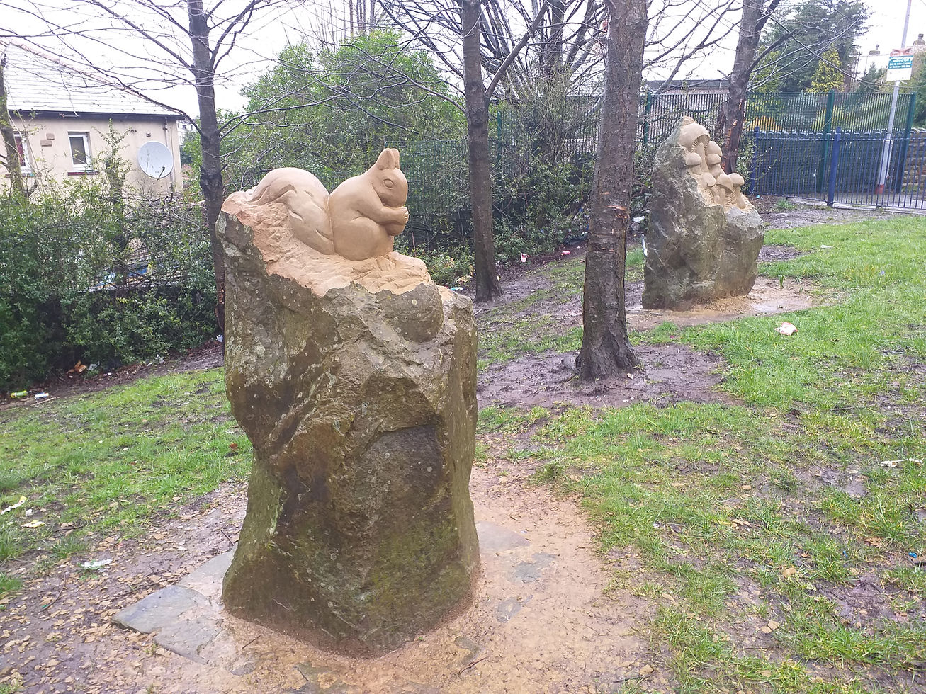 Managed to complete the carving of 5 Sandstone boulders in Bradford just before the lockdown. The theme- biodiversity, carvings of a Barn Owl, Fly Agaric toadstools, Red Squirrel, Acorn with Oak leaf and a cluster of mushrooms. @betterplacebradford #groundwork